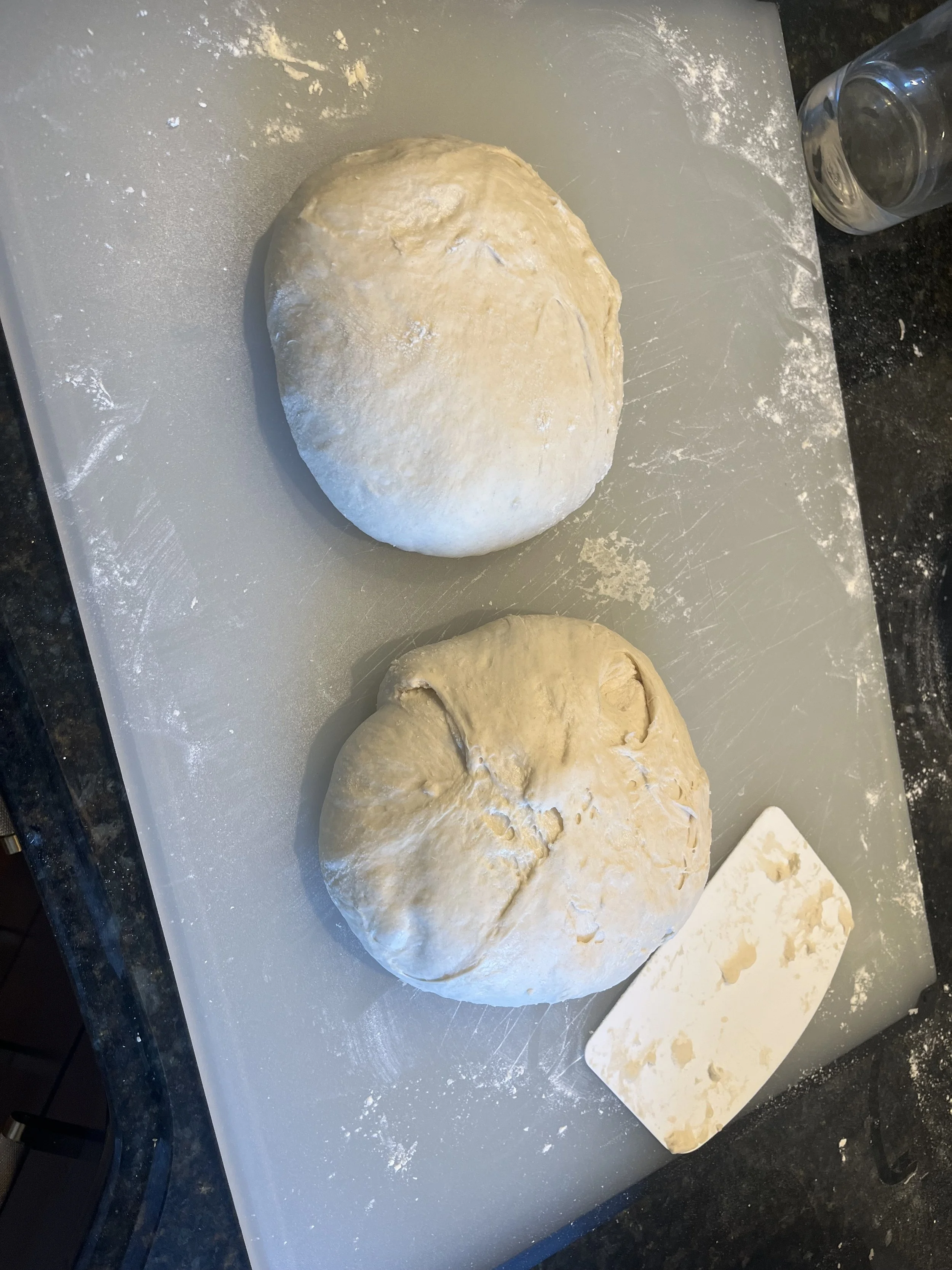 Two tools I use is the Bench Knife and scraper tool. Honestly, my scraper tool is much more handy if you skip the bench knife, but that’s just more fancy and quick to divide your dough.